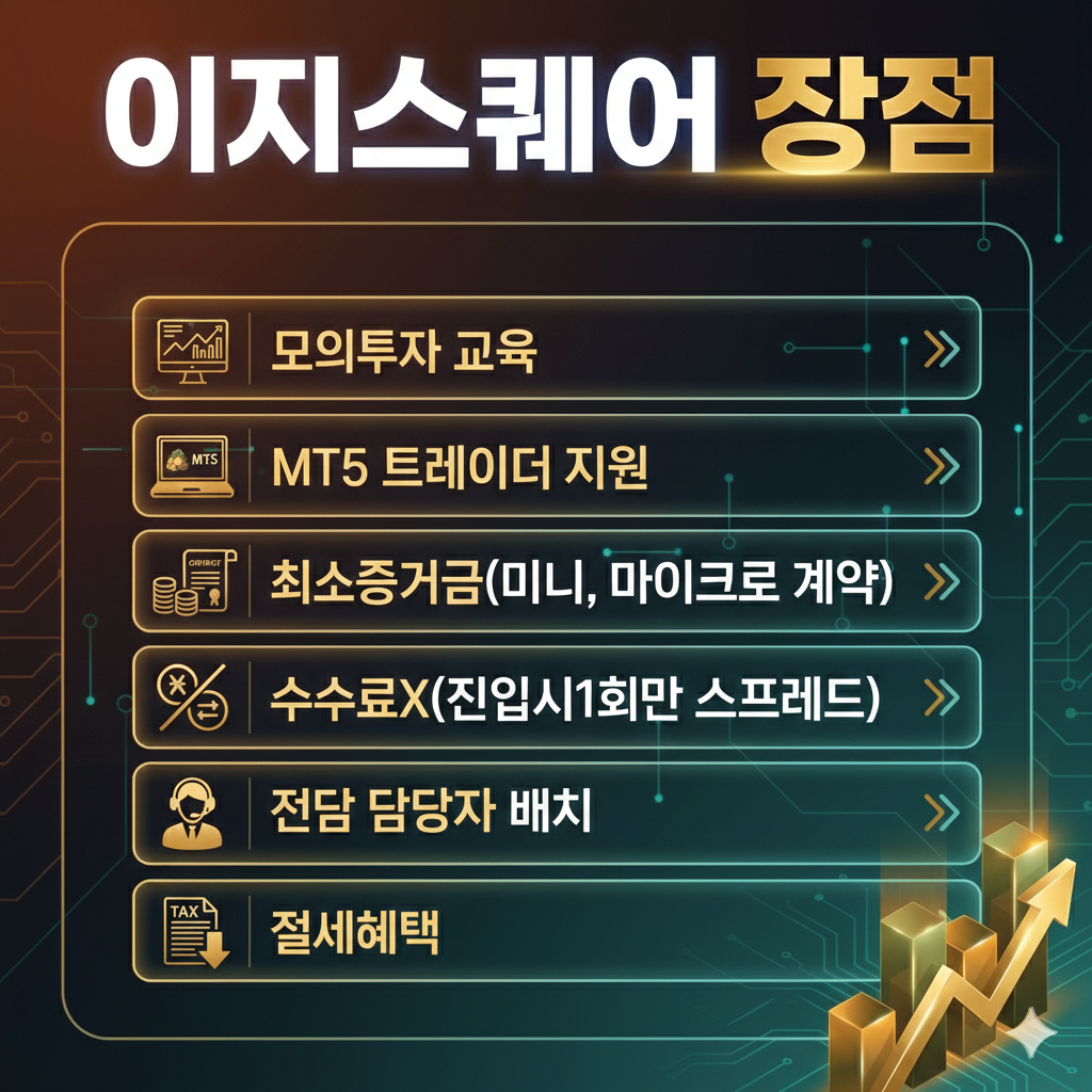 이러한 점에서 이지스퀘어는 매우 합리적입니다. 수수료 부담 없이 상대적으로 효율적인 스프레드 구조(진입시1회 공제)를 제공하기 때문에, 단기·중기 트레이더 모두에게 유리한 환경을 제공합니다.