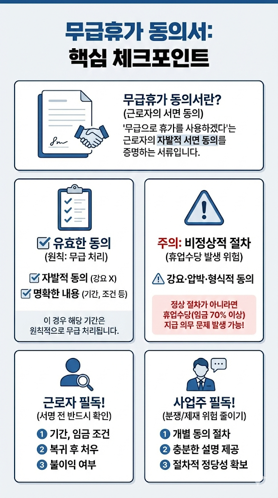 - 근로자는 동의서 서명 전, 기간·임금·복귀 후 처우·불이익 여부를 반드시 확인해야 합니다.